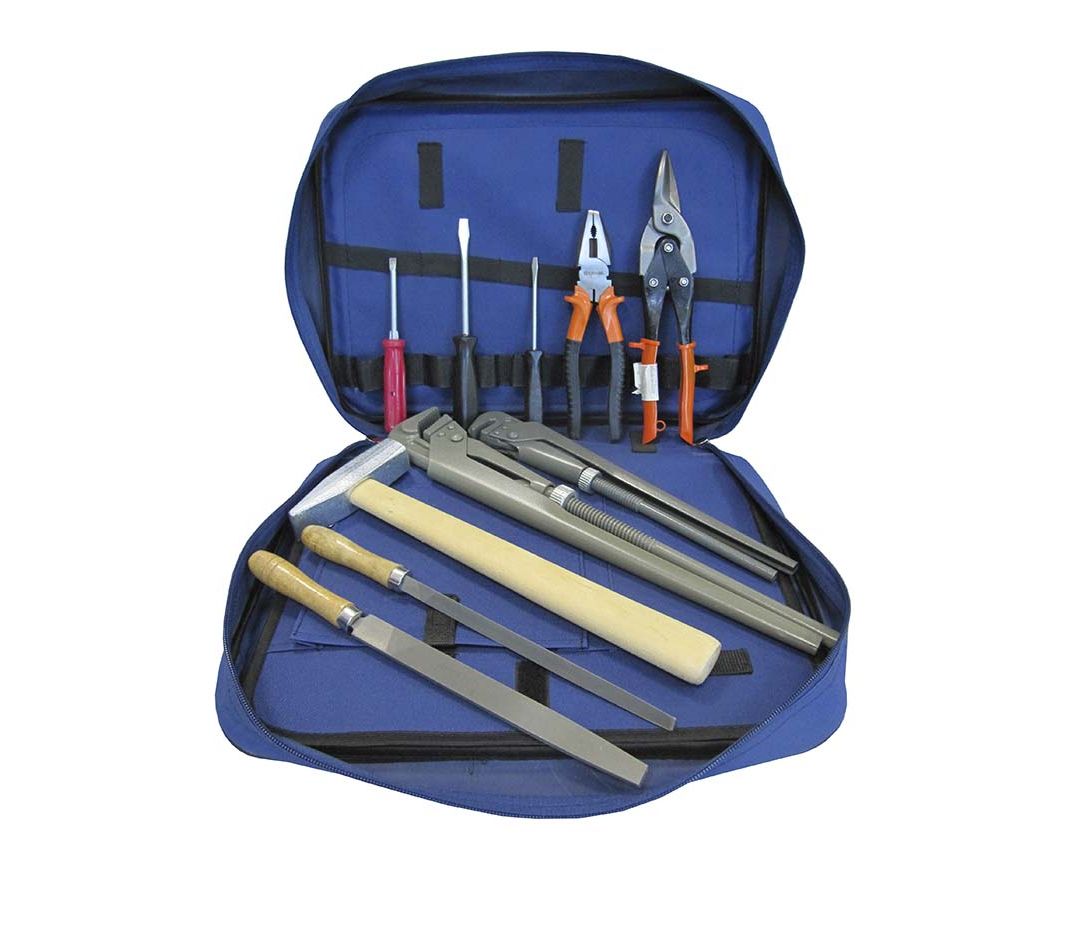 Комплект включает в себя все необходимые инструменты слесаря-сантехника в компактной сумке.